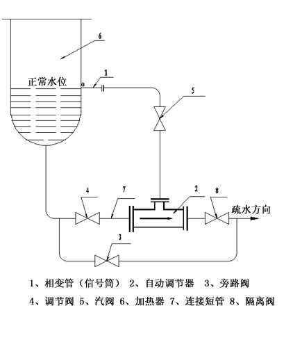 1、將旁路閥3主調(diào)節(jié)閥4全開,調(diào)節(jié)汽閥5全關(guān),正常時應無水位;若出現(xiàn)水位,應檢查管路及閥門是否有堵塞問題及系統(tǒng)原因,并由用戶解決。